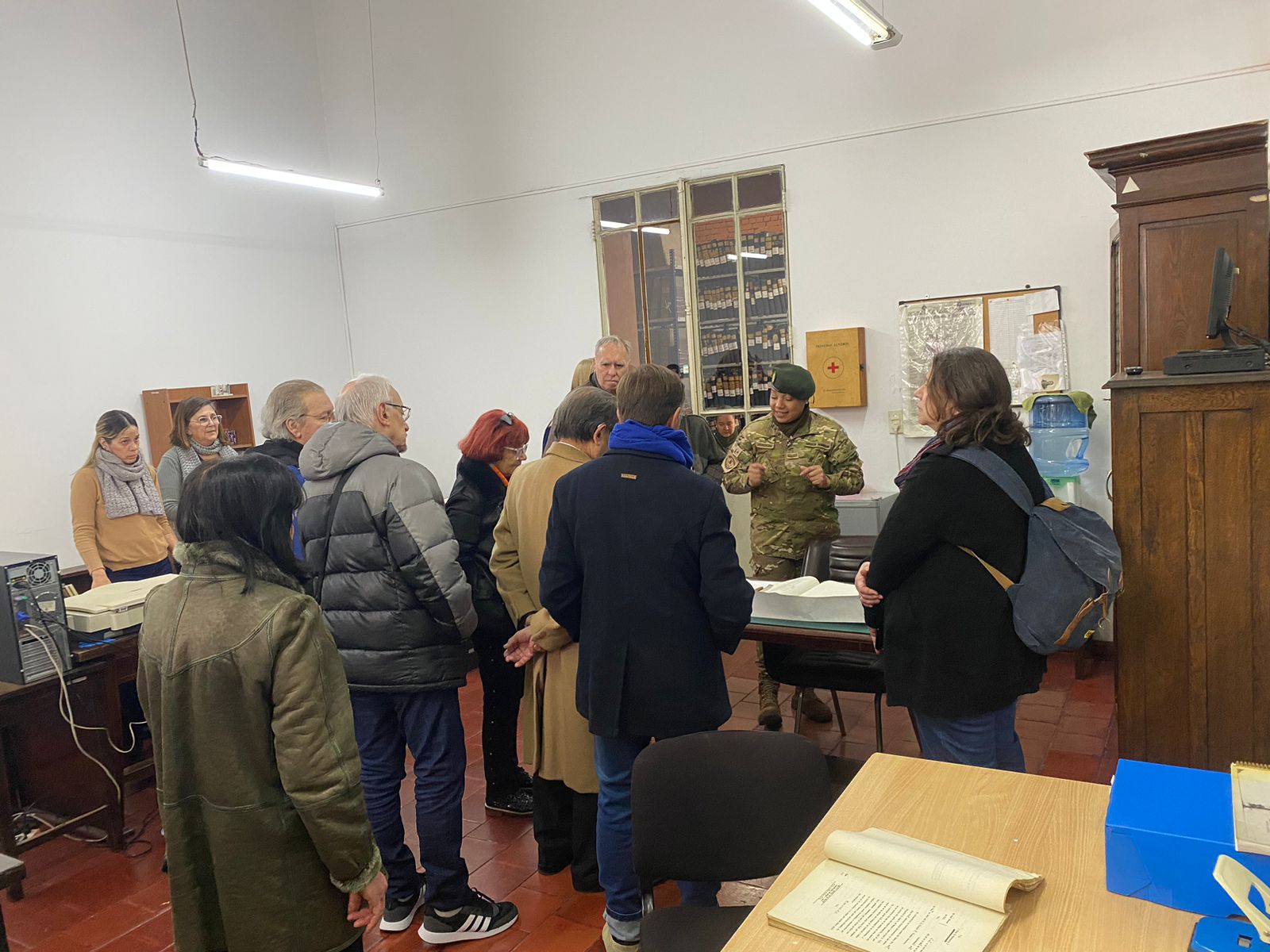 La Sargento Oficinista Carina González, quien guió a los visitantes a través de los pasillos llenos de historias del edificio y del propio Servicio Histórico. En un momento memorable, el propio Director del SHE se unió al grupo, compartiendo relatos sobre los eventos que habían dado forma a la institución a lo largo de los años.