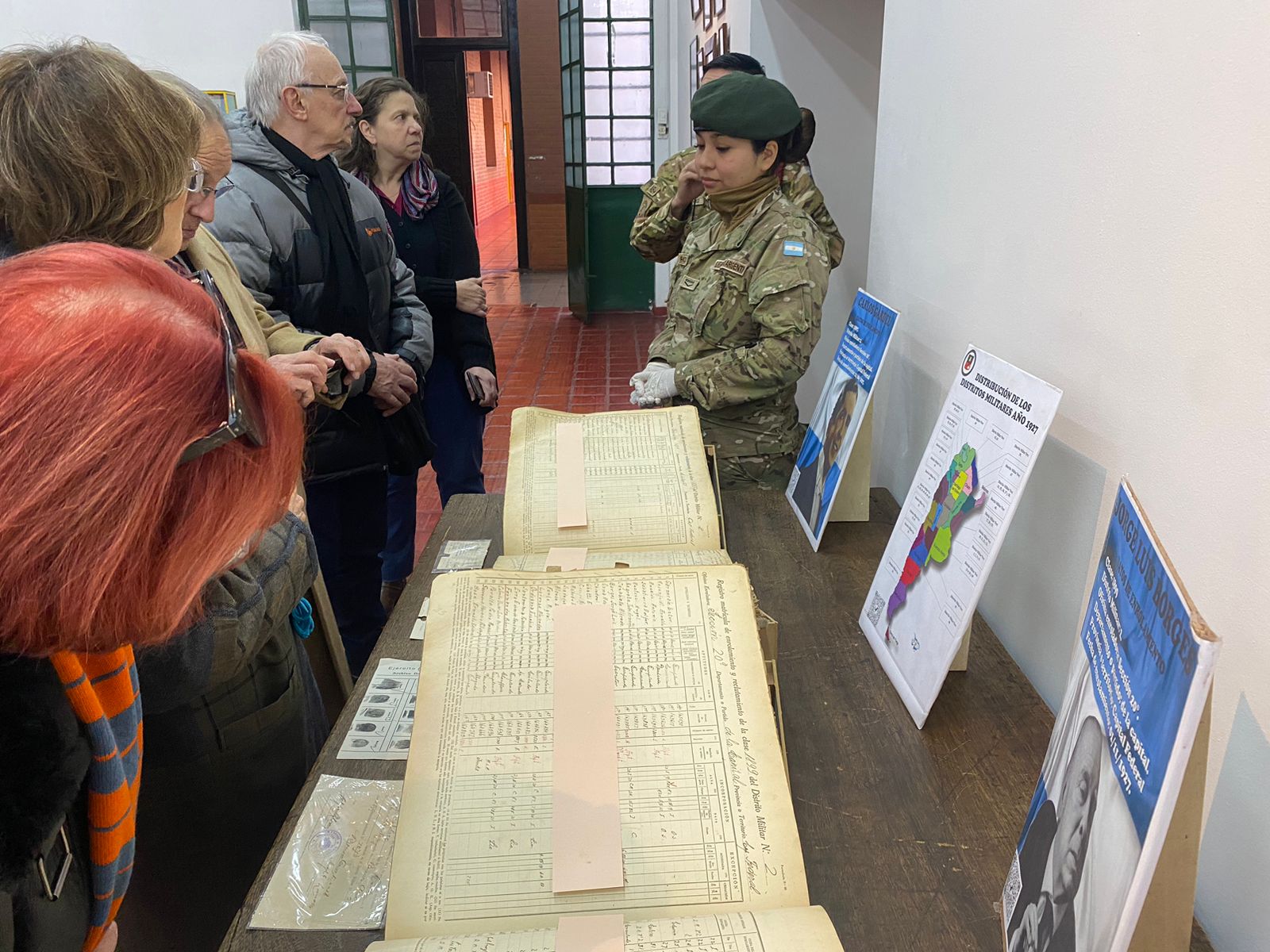 El recorrido continuó con una visita al Departamento de Libros Históricos, donde los visitantes pudieron admirar el vasto fondo documental que abarca décadas de registros históricos. Entre los documentos expuestos, destacaba el Libro de Registro de Enrolamiento y Reclutamiento, que incluía el nombre inscrito de una figura inesperada: Carlos Gardel, el icónico cantante argentino.